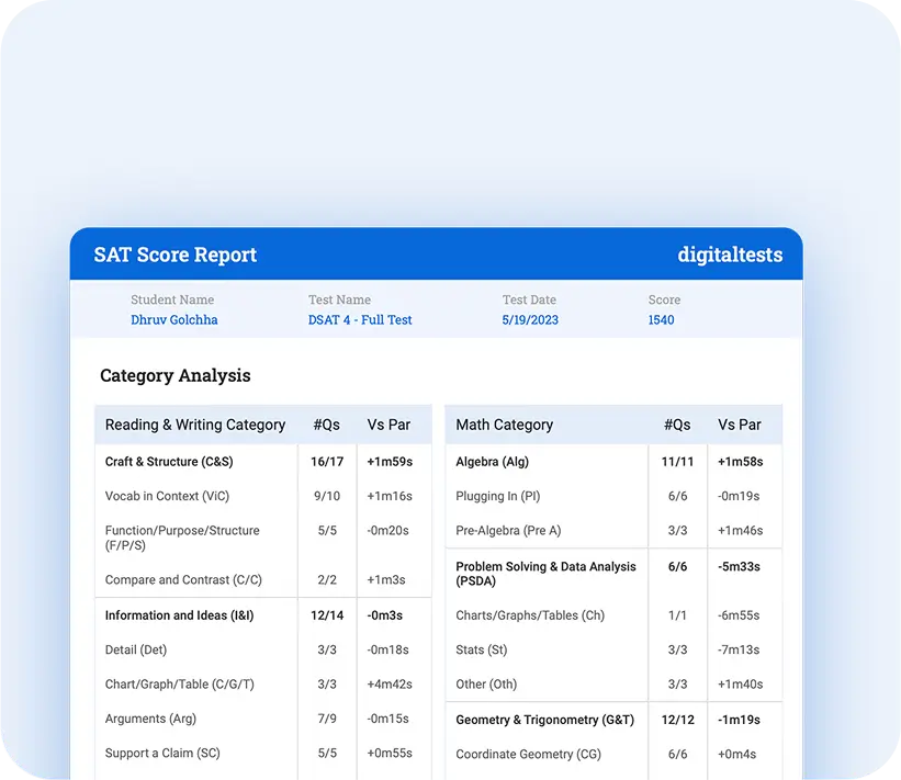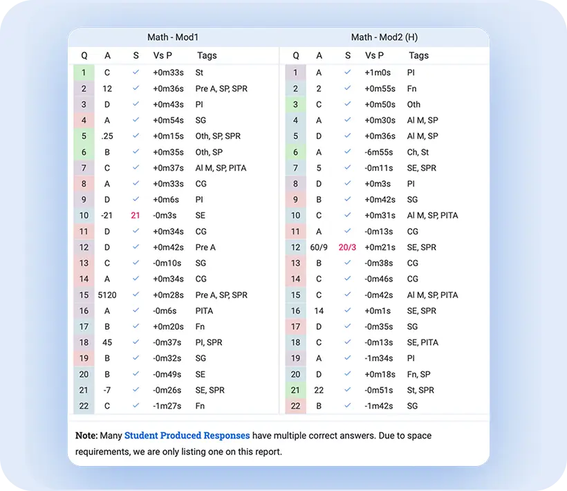 • Question-type analysis (comma rules, function notation, inference, data interpretation, and more)