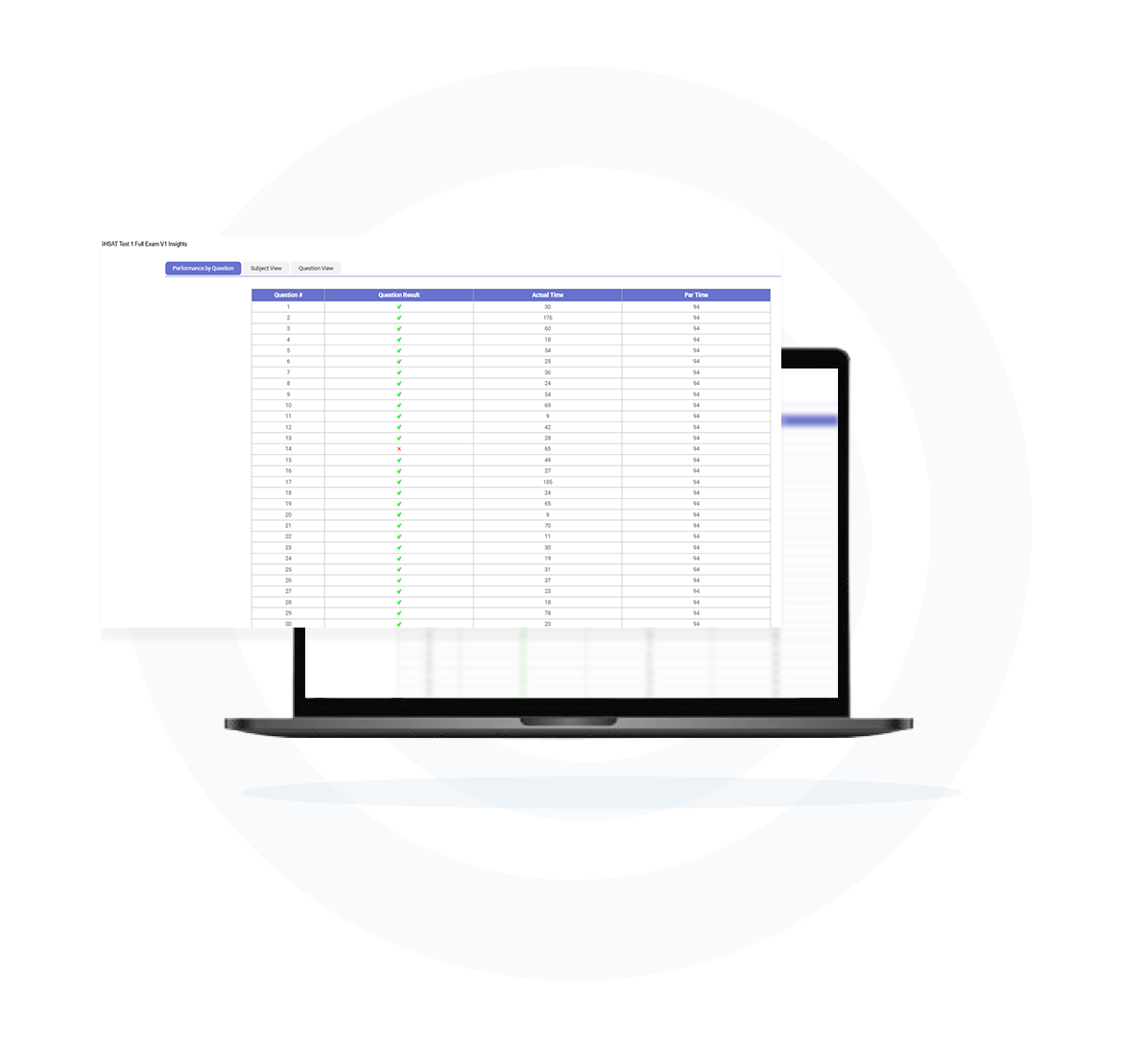 Speed is relative. Slow for a top scoring student is too fast for a low scoring student. To get a true picture of a student's performance you need to know where they lost points, where they lost time, and how they performed relative to their target score. That's where the power of par comes in.
