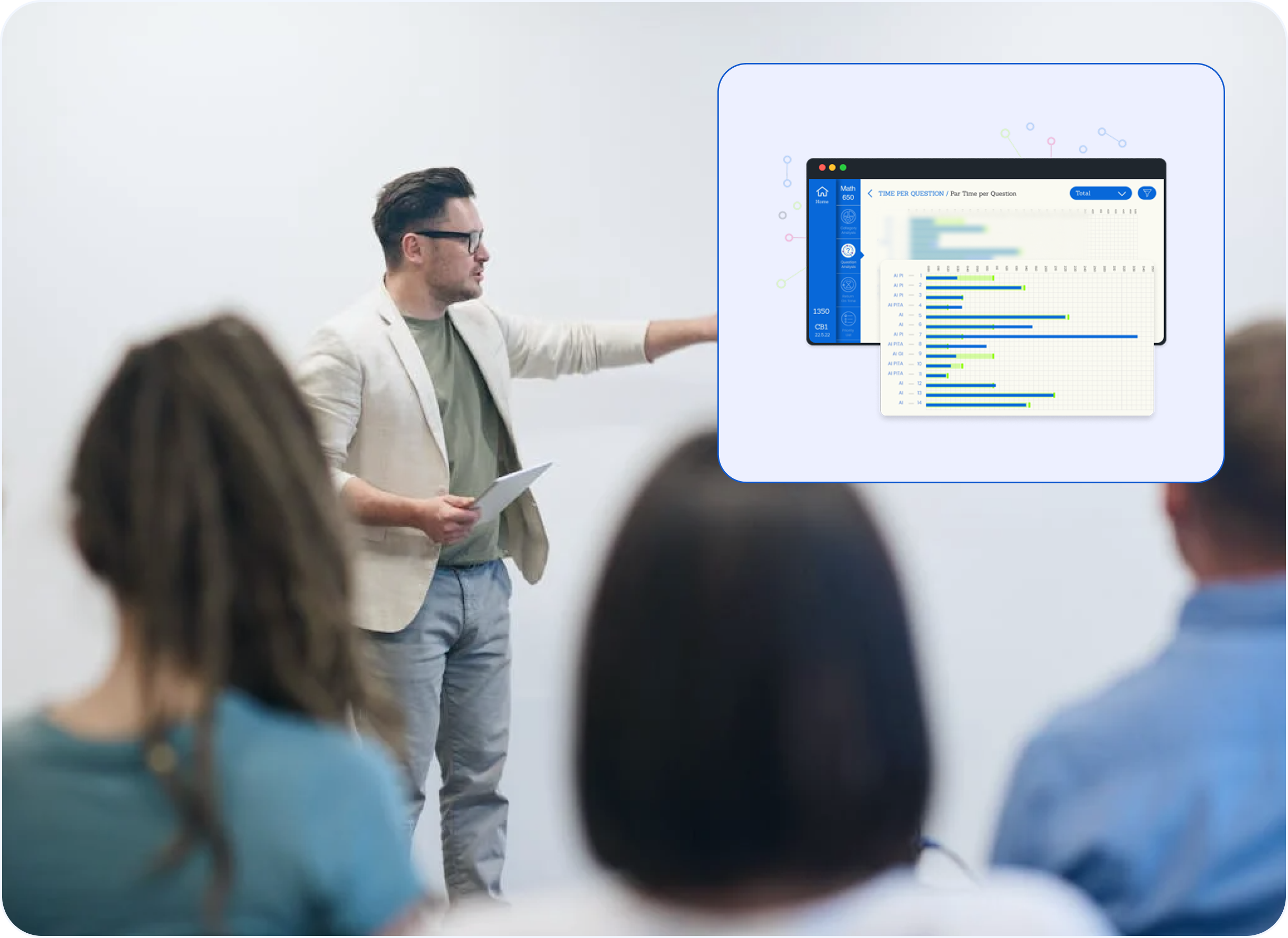 It's like an X-ray. We can show you exactly what each student did on each practice test. You don't have to pore over score reports or rely on students telling you how they "feel" about their performance. Save yourself the time and get focused insights into the areas that really matter for each student. Our data will make you look like a test prep genius!